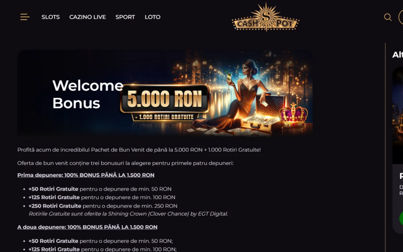 CashPot Romania – cazinou online și casă de pariuri moderne