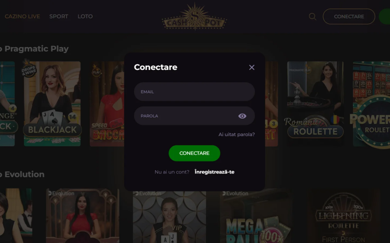 Funcția CashPot conectare permite acces rapid și sigur la platformă, indiferent de dispozitiv. Totul ce trebuie să faceți este să introduceți parola și numele de utilizator pe care i-ați configurat în timpul înregistrării. Pentru a proteja datele personale și sesiunea, platforma folosește tehnologii moderne de criptare. Procesul de recuperare este rapid și ușor, disponibil prin email în cazul în care ai uitat parola. Orice tip de conexiune are o experiență fluidă datorită optimizării conexiunii.